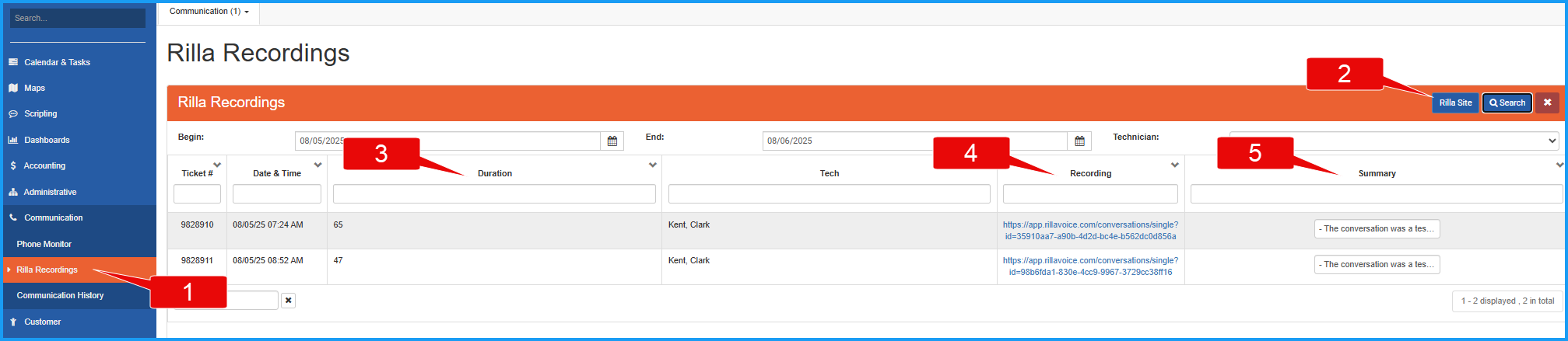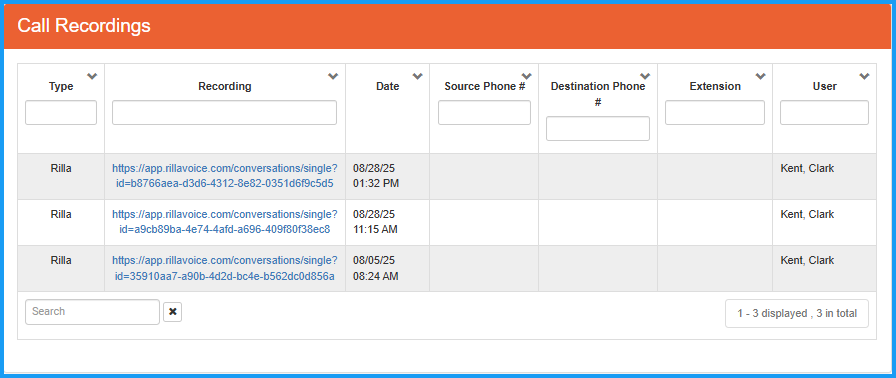 - If your office is using Rilla, then you can view the recordings here. Click on the recording link and the Rilla website will launch in a new tab allowing you listen to the recording.