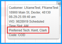 - Added the 'Preferred Tech' to the dispatch calendar popup (when you hover over a scheduled work order)