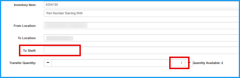 - NOTE: If you enter an amount greater then what's available in the From Location, the number is changed to the amount the From Location has. If you enter a number less than 1, that number is then changed to 1.
