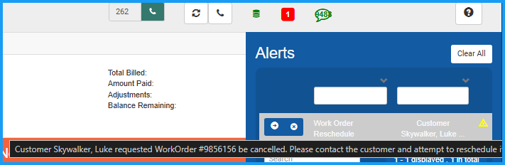 - A SmartWare Alert will also be added letting you know a customer wanted to cancel a work order so you can reach out to the customer and try to get it rescheduled instead.