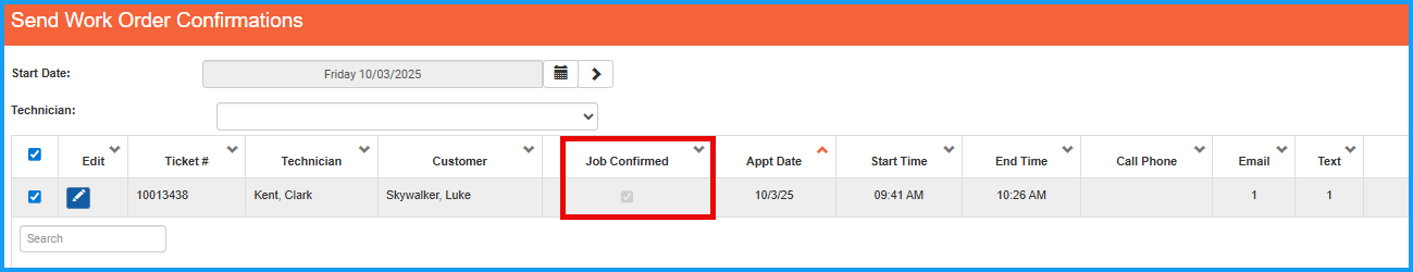 - Added the 'Job Confirmed' column to the Send Confirmation grid so you can see if the job has already been confirmed before sending out confirmation.